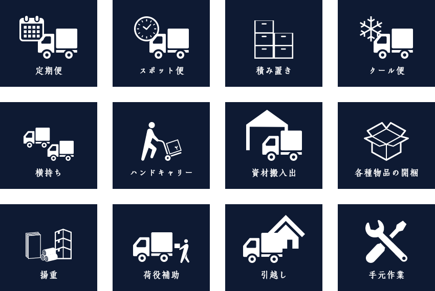 一般貨物自動車運送事業を通じて、多様な荷物を安全かつ確実にお届けします。
